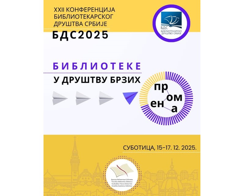 22. međunarodna konferencija Bibliotekarskog društva Srbije s temom “Biblioteke u društvu brzih promena” održat će se u Gradskoj knjižnici Subotica od 15. do 17. prosinca 2025. godine. Organizatori pozivaju zainteresirane