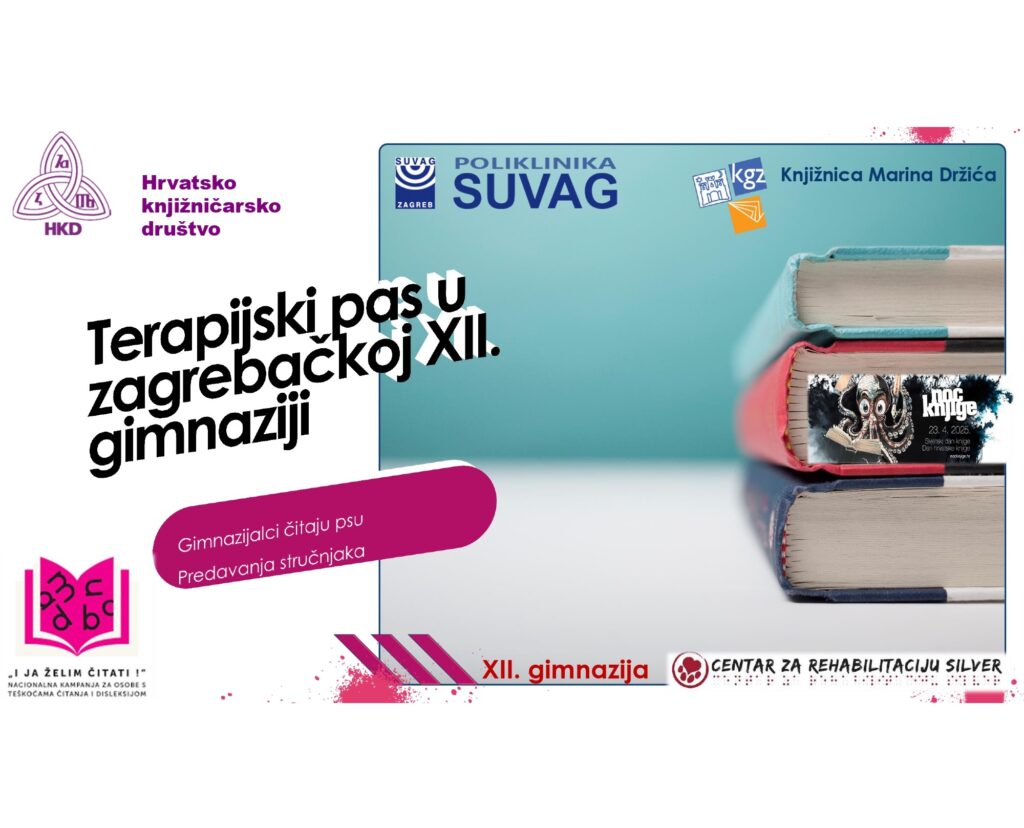 • Ove godine Nacionalna kampanja za osobe s teškoćama čitanja i disleksijom „I ja želim čitati!“ i Knjižnica Marina Držića organizirat će radionicu čitanja terapijskom psu. Čitanje uz pomoć terapijskog psa značajno pridonosi poticanju pozitivne unutarnje motivacije i pozitivnog stava prema čitanju. Gimnazijalci će čitati odlomke iz Životinjske farme Georgea Orwela.